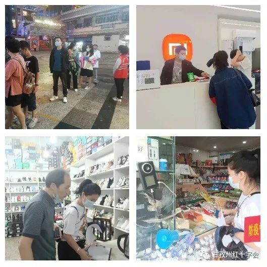 康定市红十字会志愿者参与督查经营场所落实防控措施情况,开展街面宣传劝导。