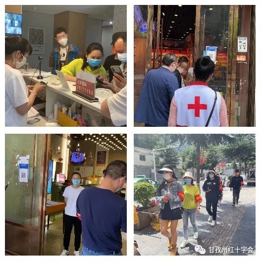 丹巴县红十字会志愿配合督查餐饮、酒店等市场主体落实防控措施情况,督促市民“扫码戴罩”。