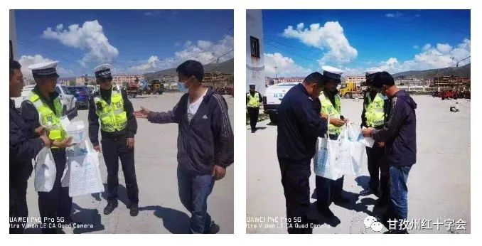 理塘县红十字会为一线民警送去口罩等防疫物资。