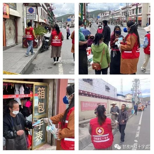 石渠县红十字会工作人员走访商铺、农贸市场宣讲疫情防控政策、为过往群众发放口罩。