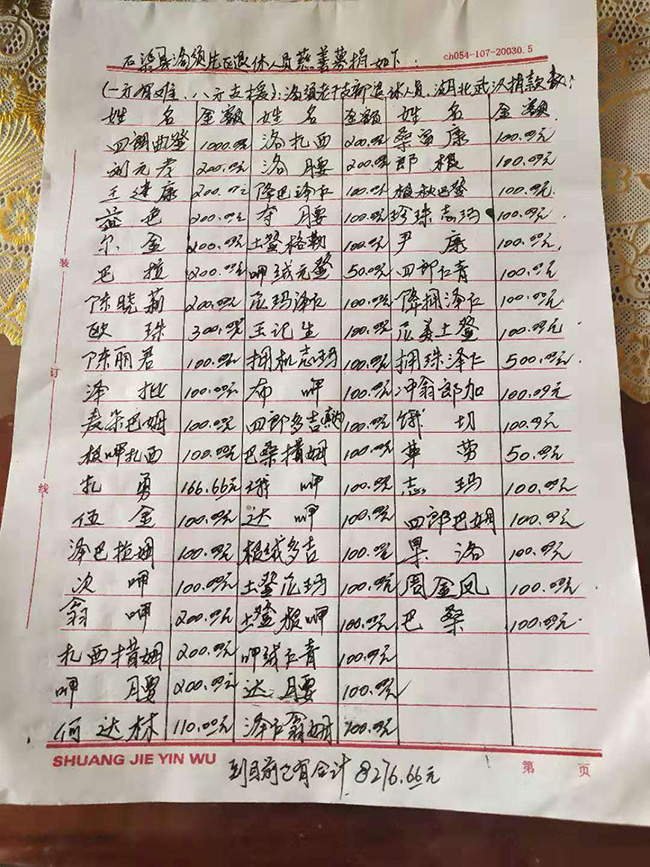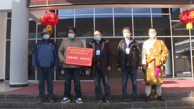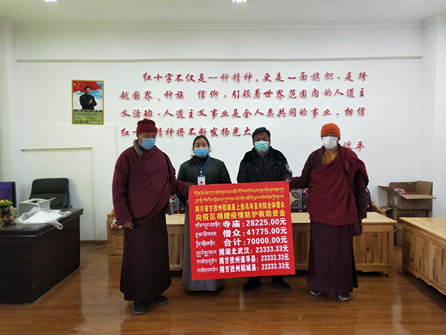 九龙县呷尔镇华邱村通过九龙县红十字会捐款63999元,稻城县上热乌寺及寺院全体僧尼捐款70000元。