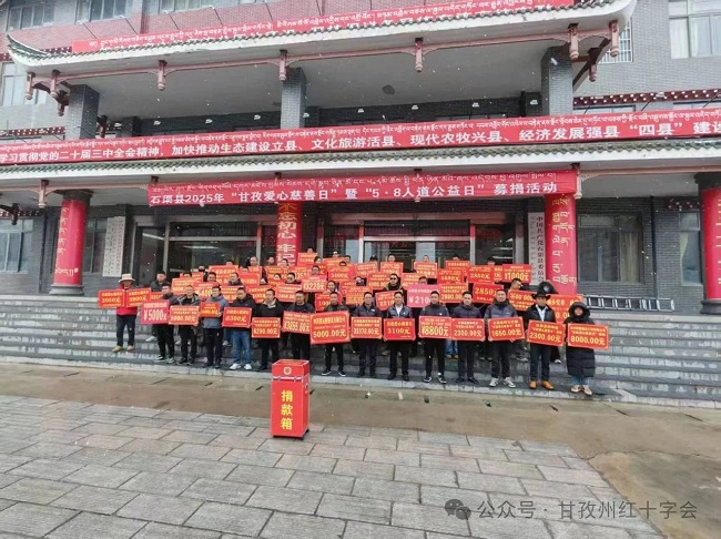 石渠县举行“甘孜爱心慈善日”暨“5.8人道公益日”集中募捐活动,政府主要领导出席活动并发出募捐倡议。全县各乡镇、各部门主要负责人,在县企业代表、个体工商户代表及部分干部职工代表以实际行动为公益事业贡献力量。活动现场共募集资金35万余元。