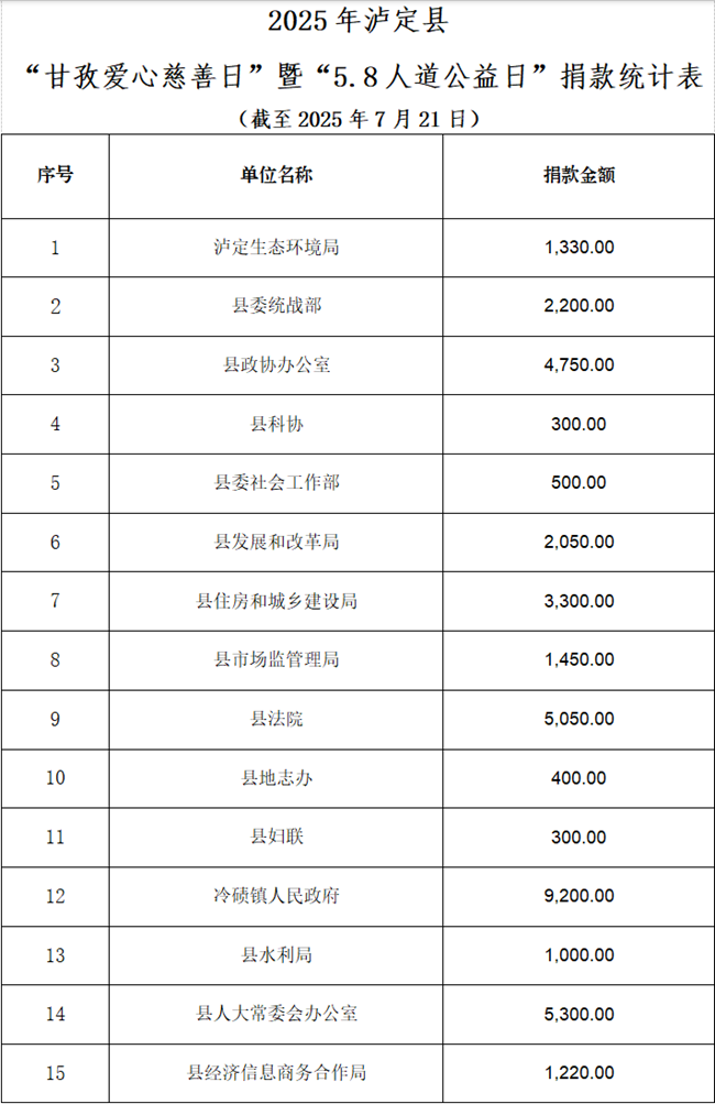 泸定县红十字会“甘孜爱心慈善日”暨“5.8人道公益日”捐赠资金情况公示