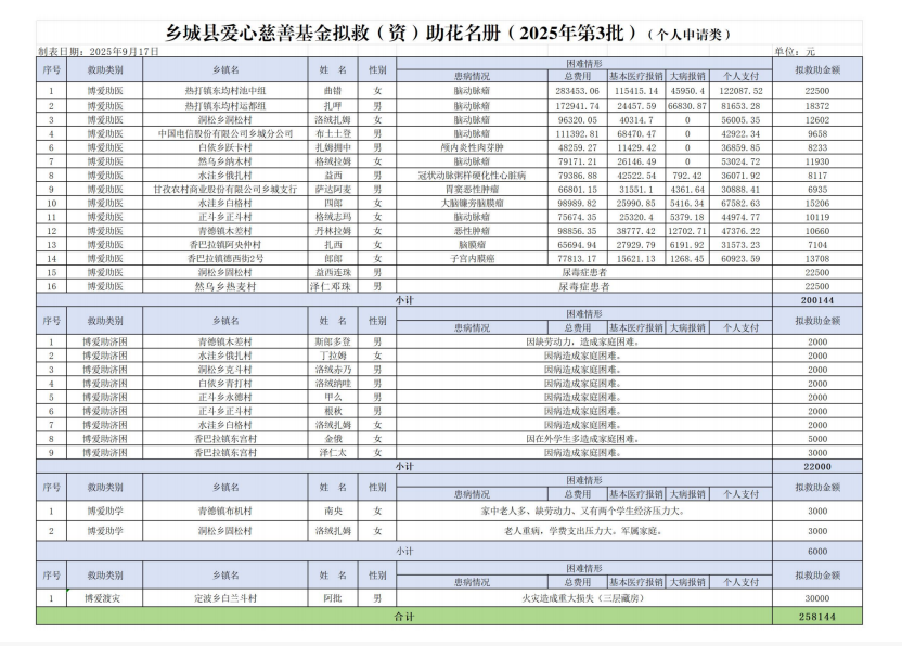 附件:乡城县爱心慈善基金拟救(资)助花名册(2025年第3批)