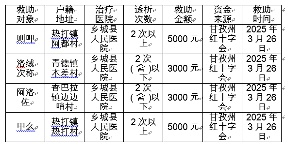 为助力巩固脱贫攻坚成果同乡村振兴有效衔接,防止因病因残发生群体性返贫,推动共同富裕试验县建设。对2024年度符合《甘孜州红十字会关于开展2024年度"尿毒症患者"救助工作的通知》(甘红会发(2024〕2号)文件要求的“尿毒症患者”进行专项救助。